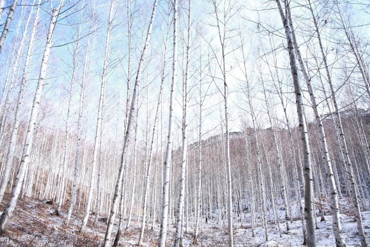 - 자작나무: 하얀 수피가 겨울의 정적과 완벽하게 어우러집니다. 다만 기후변화로 중부지방 이남 식재는 어렵습니다.