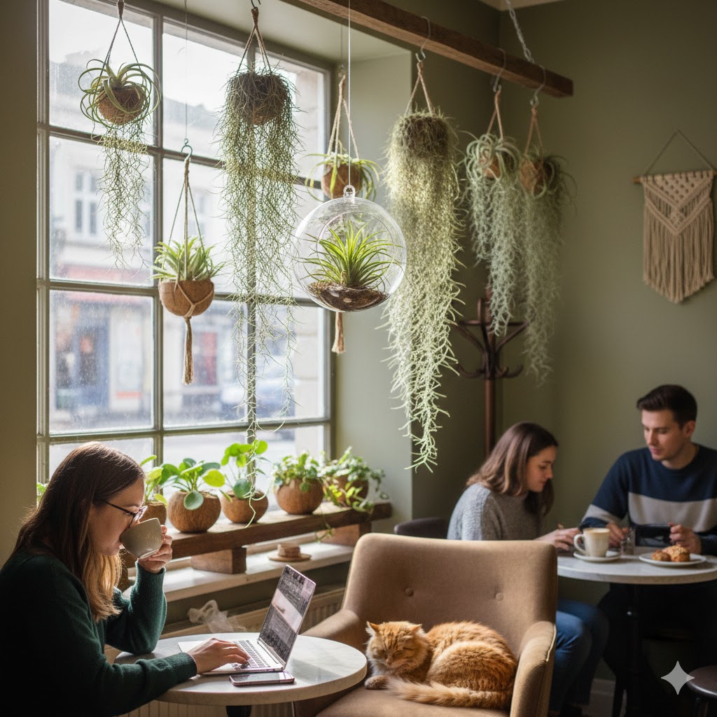 흙이 없어도 잘 자라는 공중식물 중에서도 관리 난이도가 가장 낮고 시각적 효과가 뛰어난 세 가지 식물을 추천합니다.